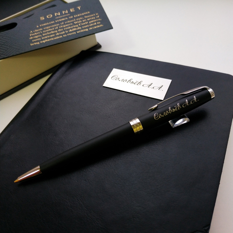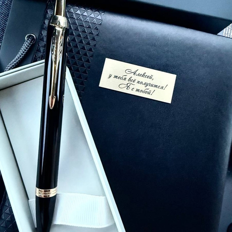 Если вы приобретаете подарочный набор, в дополнение к вышеперечисленному идёт ежедневник (с гравировкой или без - как решите), подарочный пакет PARKER и открытка для ручной подписи