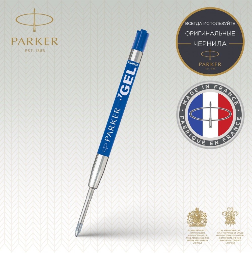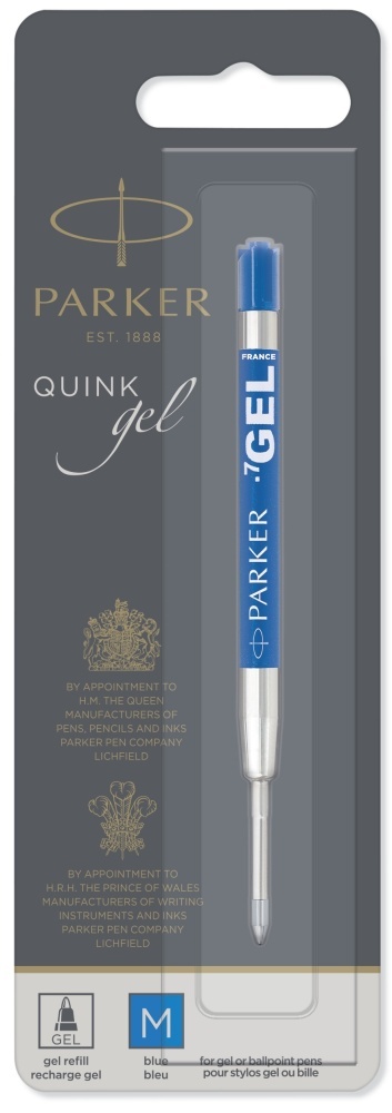 Стержень гелевый для Шариковой Ручки. "Parker Gel Pen Refill - M (толщина)". Для использования в шариковых ручках Паркер, линия письма - средняя 0,7мм, чернила синего цвета, в блистерной упаковке. Произведено во Франции.