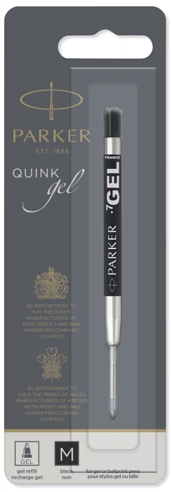 Стержень гелевый для Шариковой Ручки. "Parker Gel Pen Refill - M (толщина)". Для использования в шариковых ручках Паркер, линия письма - средняя 0,7мм, чернила черного цвета, в блистерной упаковке. Произведено во Франции.