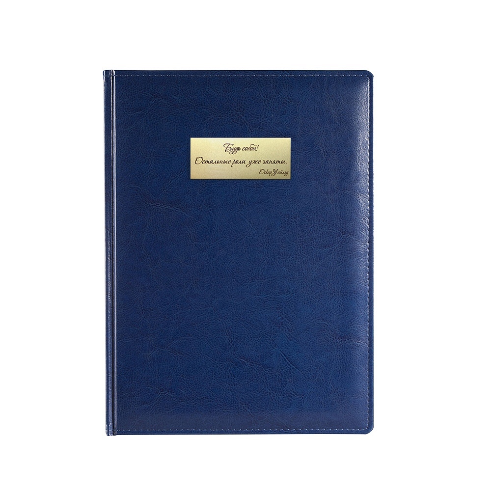 Мягкий и приятный на ощупь ежедневник с гравировкой "Будь собой! Остальные роли уже заняты" на латунной табличке золотого цвета.
