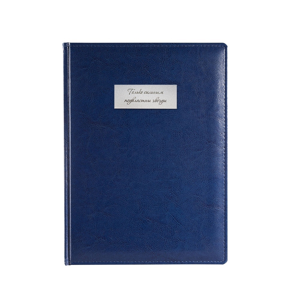 Мягкий и приятный на ощупь ежедневник с гравировкой "Только сильным подвластны звезды" на латунной табличке серебряного цвета.