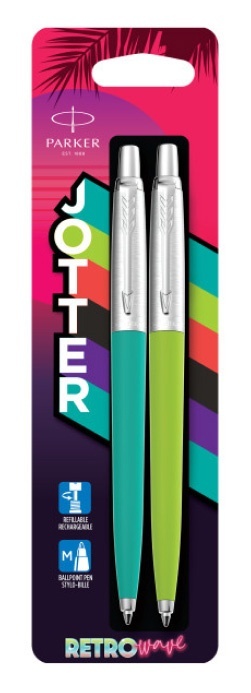 Набор ручек Jotter Retrowave сподвигнет вас пересмотреть научно-фантастические фильмы, видеоигры и моду 1980-х годов и перенесет в ностальгическое путешествие в ту эпоху, когда яркий неон и смелая графика освещали мир, а культовый силуэт Jotter был окутан яркой иконографией 80-х. Вдохновитесь, чтобы написать свое собственное будущее с отделкой корпусов ручек в цветах Caribbean Blue и Apple Green. Коллекция Jotter Originals Retrowave - для писателей Новой волны.