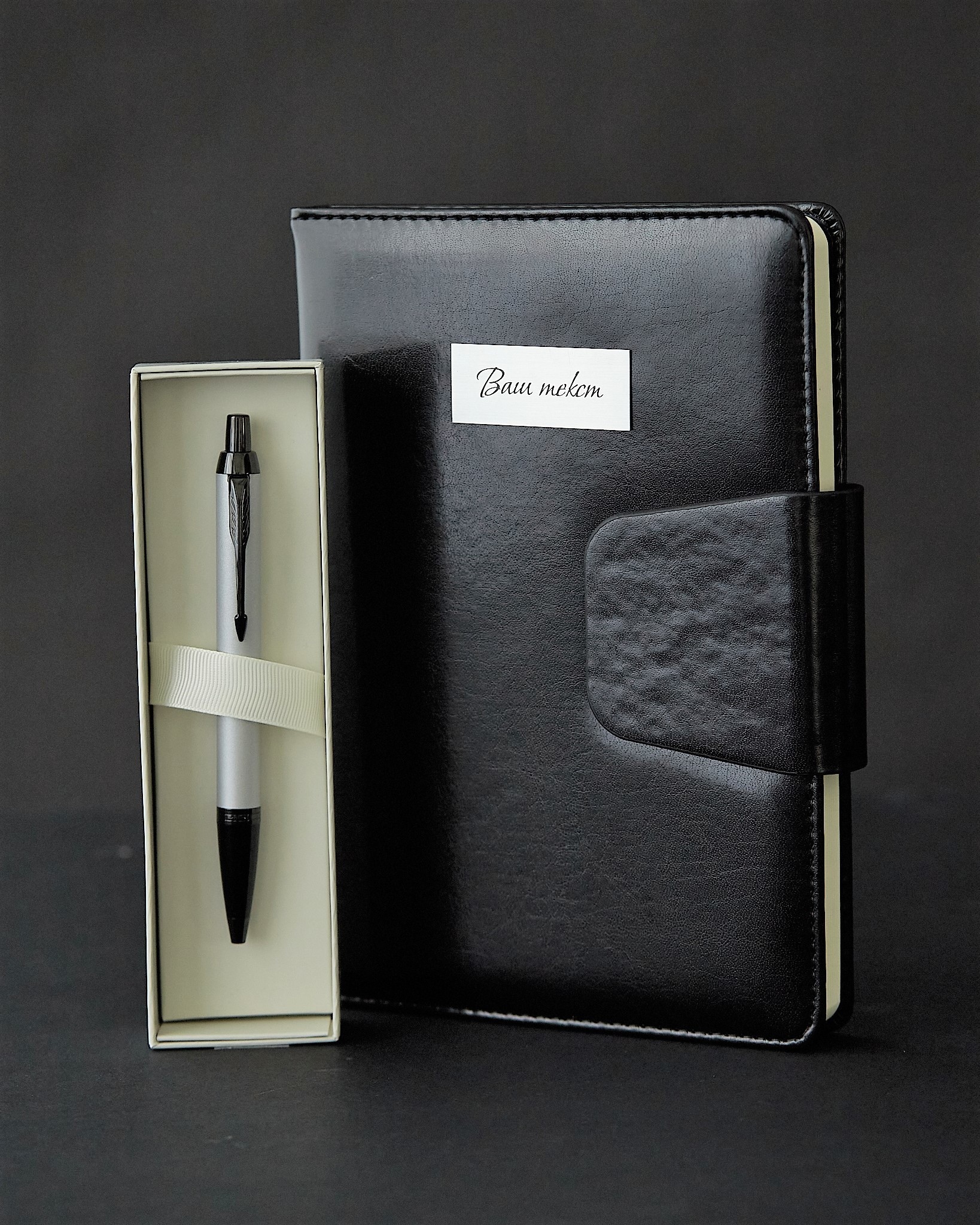 Гравировка на ежедневнике (латунная табличка, ваш текст)