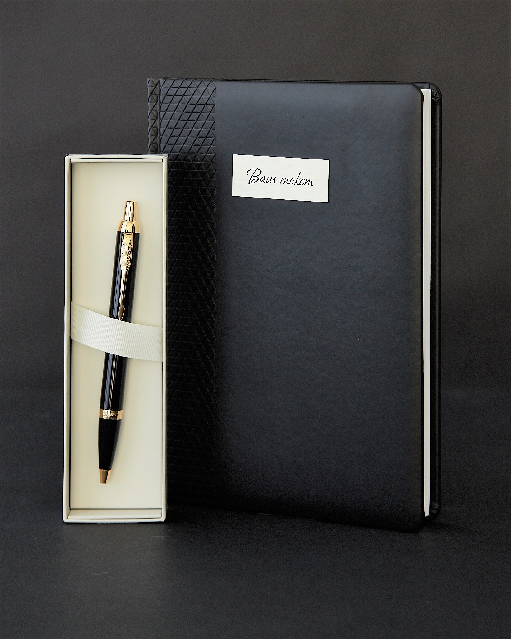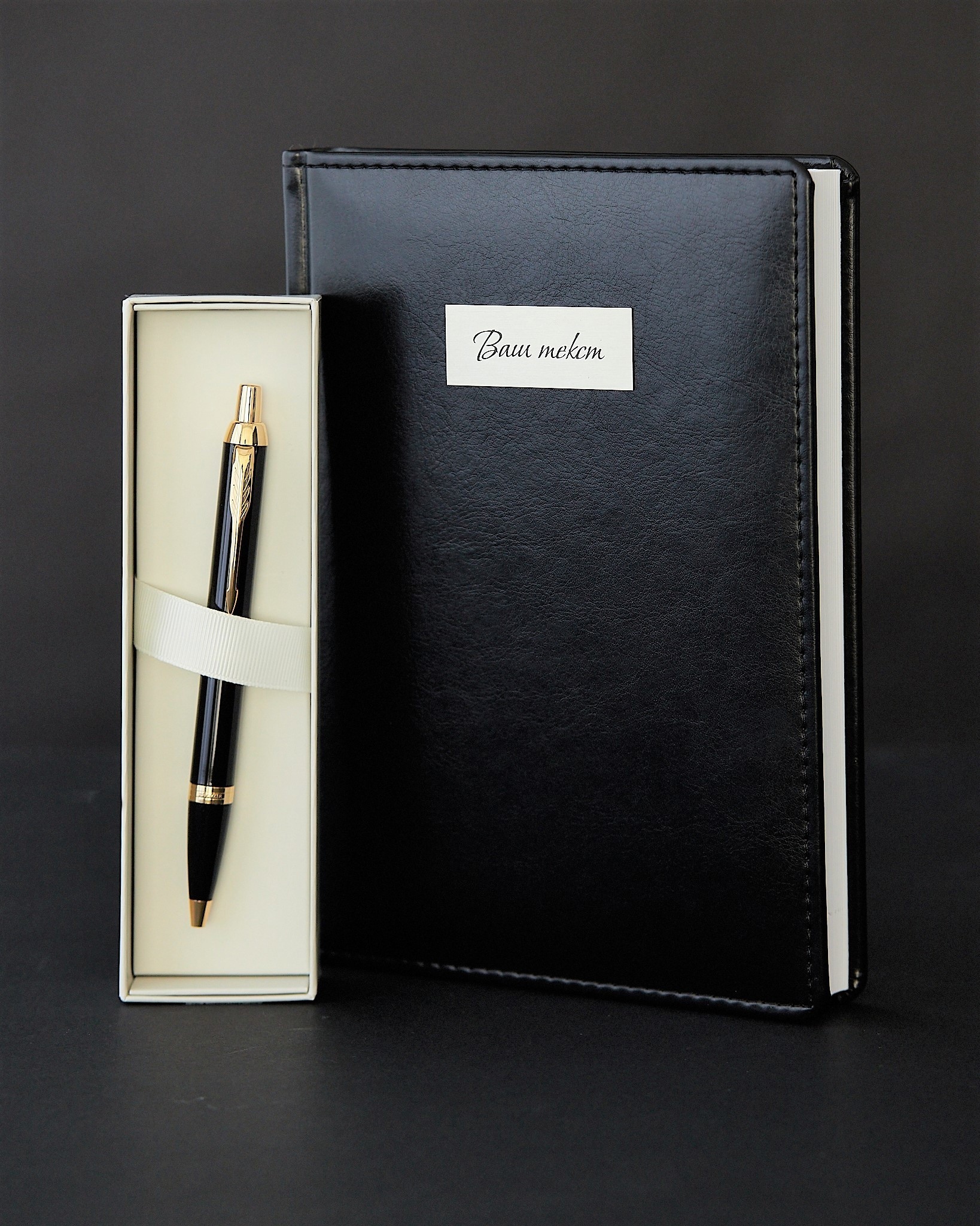 Гравировка на ежедневнике (латунная табличка, ваш текст)