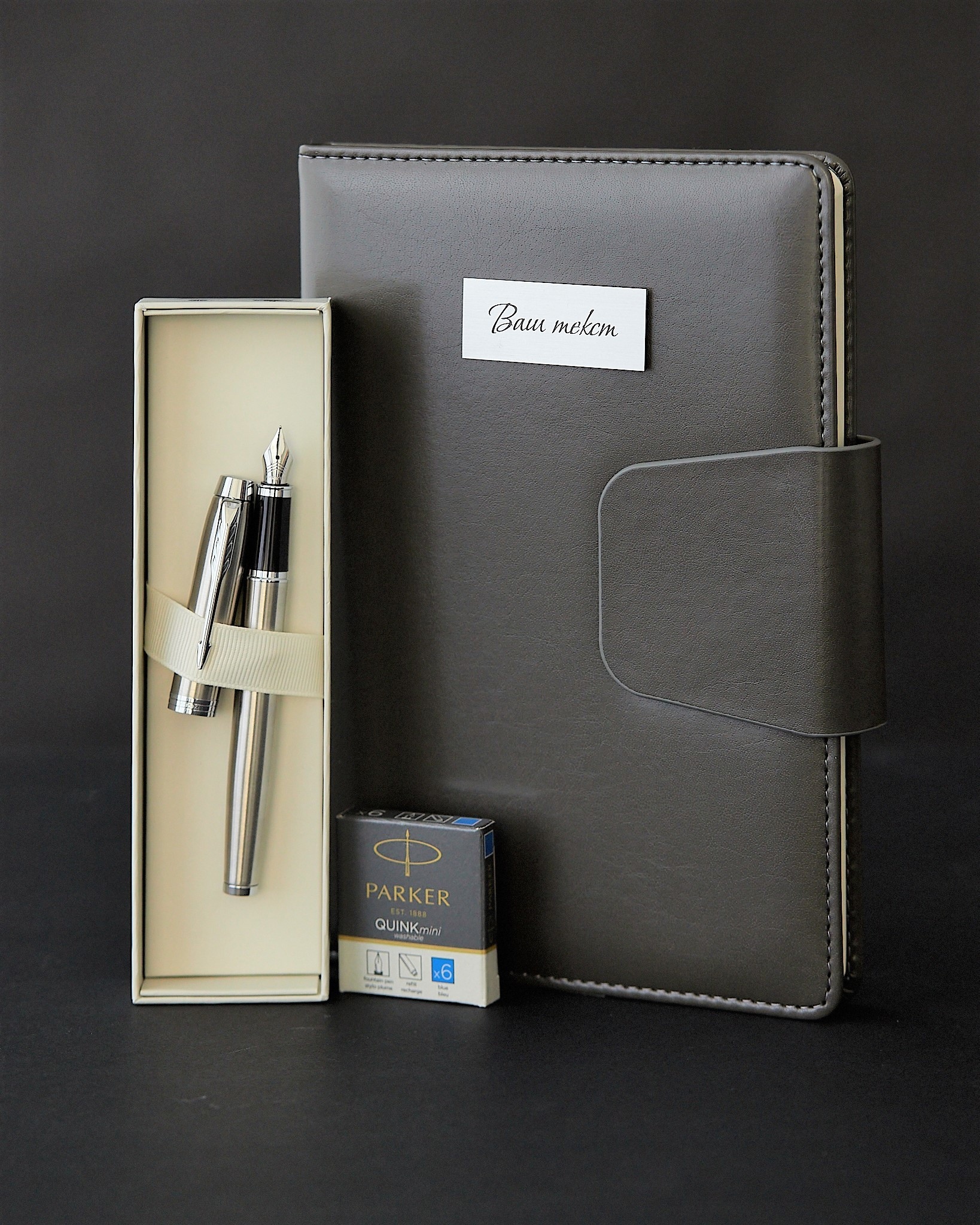 Полная информация на сайте: https://ruchezh.ru/product/nabor-s-gravirovkoy-ezhednevnik-nedatirovannyy-i-perievaya-ruchka-parker-im-stainless-steel-ct?variant_id=445729327