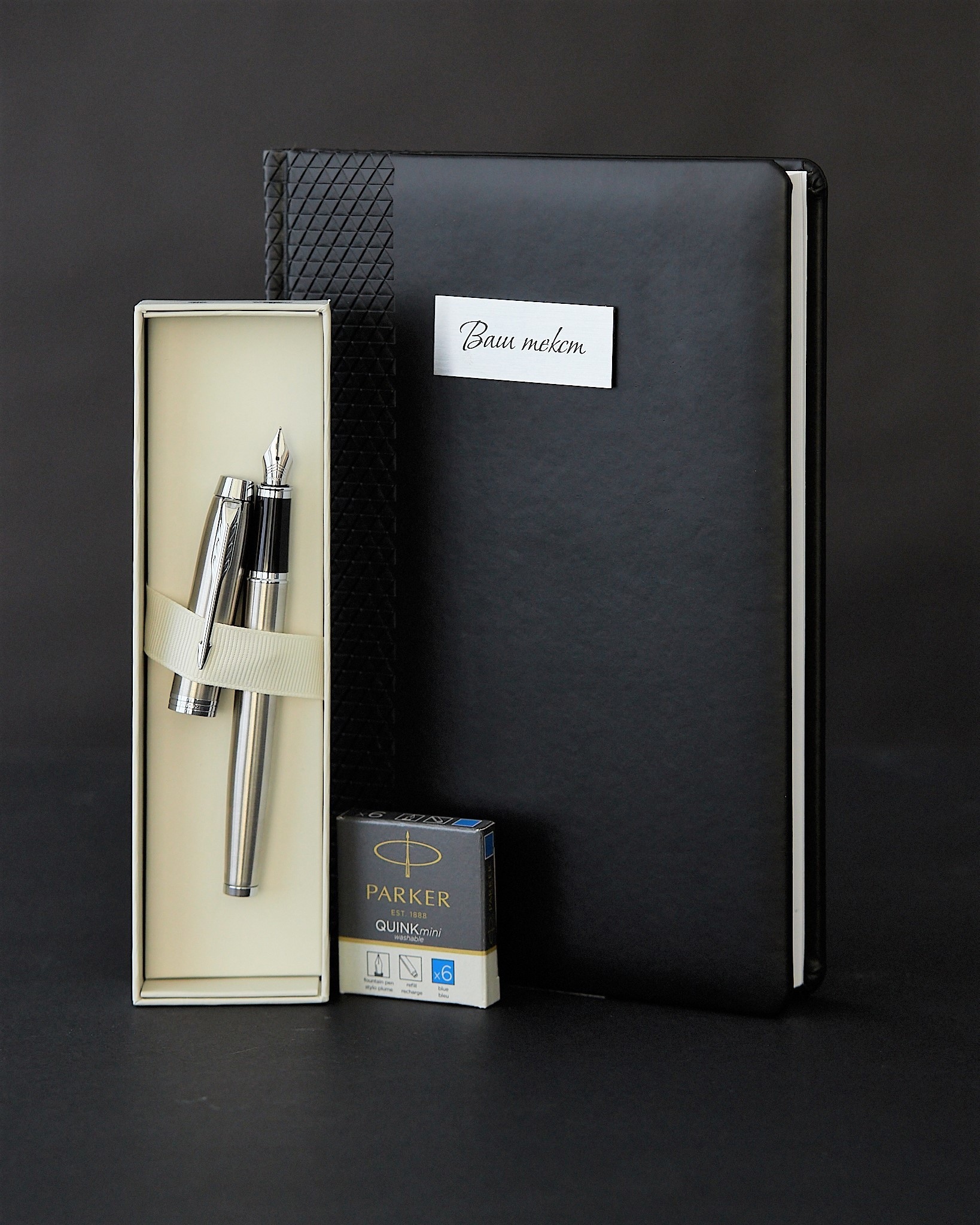 Гравировка на ежедневнике (латунная табличка, ваш текст)