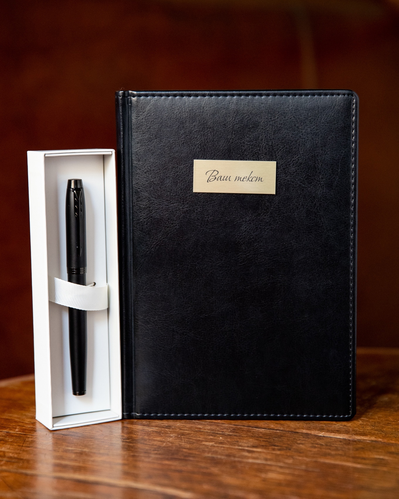 Гравировка на ежедневнике (латунная табличка, ваш текст)