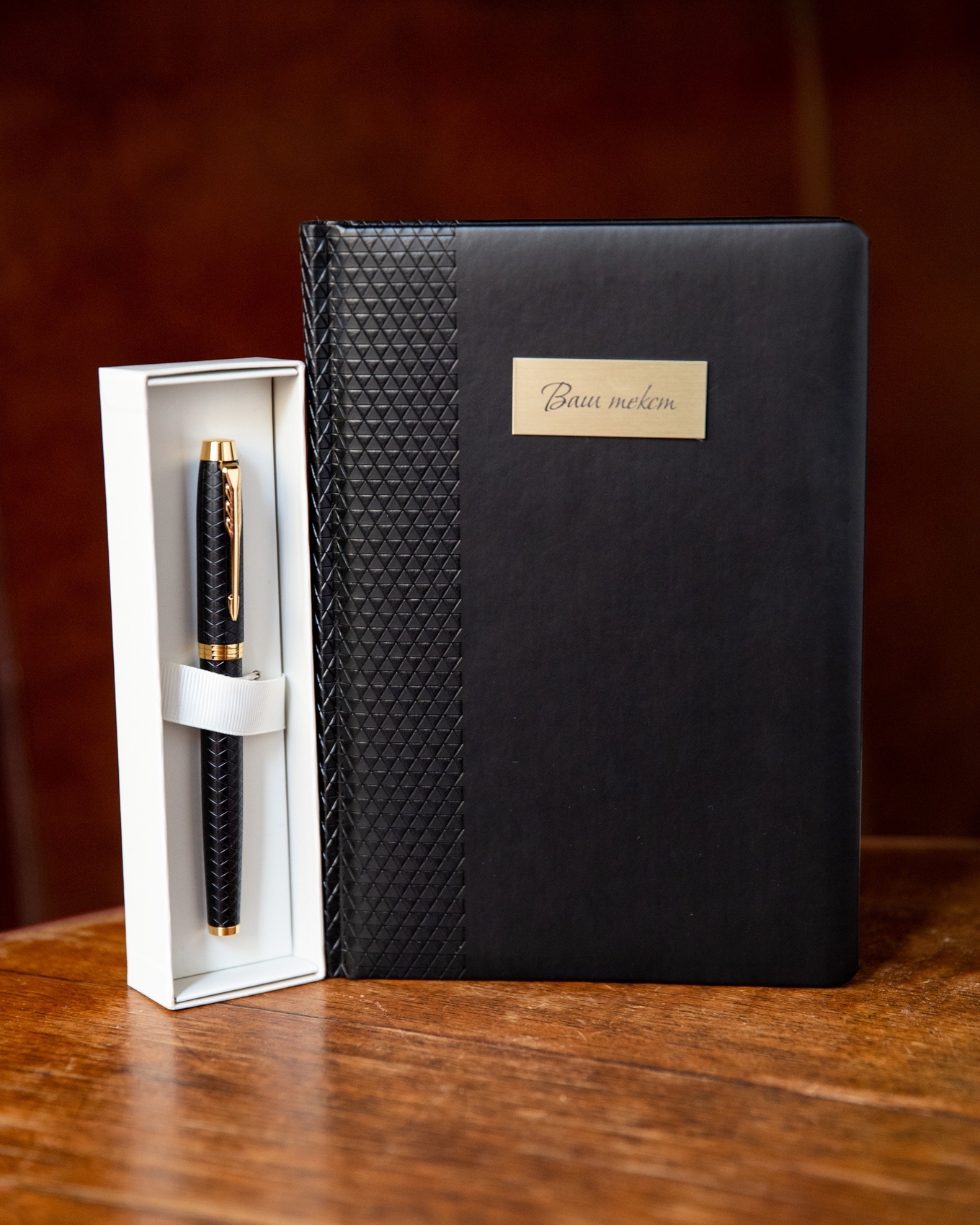 Гравировка на ежедневнике (латунная табличка, ваш текст)