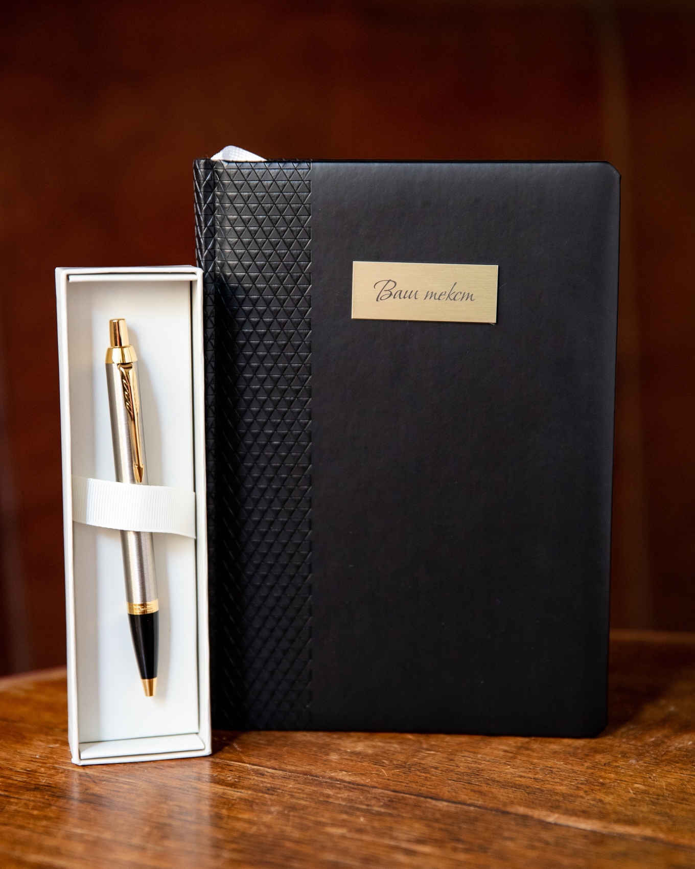 Гравировка на ежедневнике (латунная табличка, ваш текст)