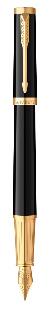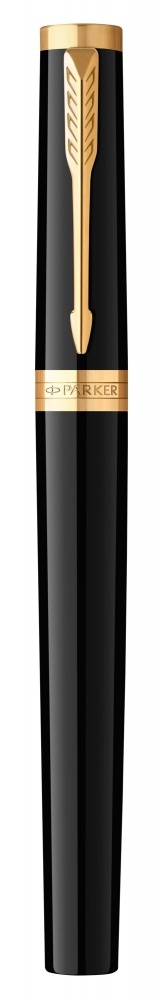 Корпус покрыт глянцевым лаком глубокого черного цвета. Зона захвата украшена знаковым гравированным узором. Дизайн дополнен позолоченными декоративными элементами. Ручка упакована в изысканную фирменную коробку Parker.