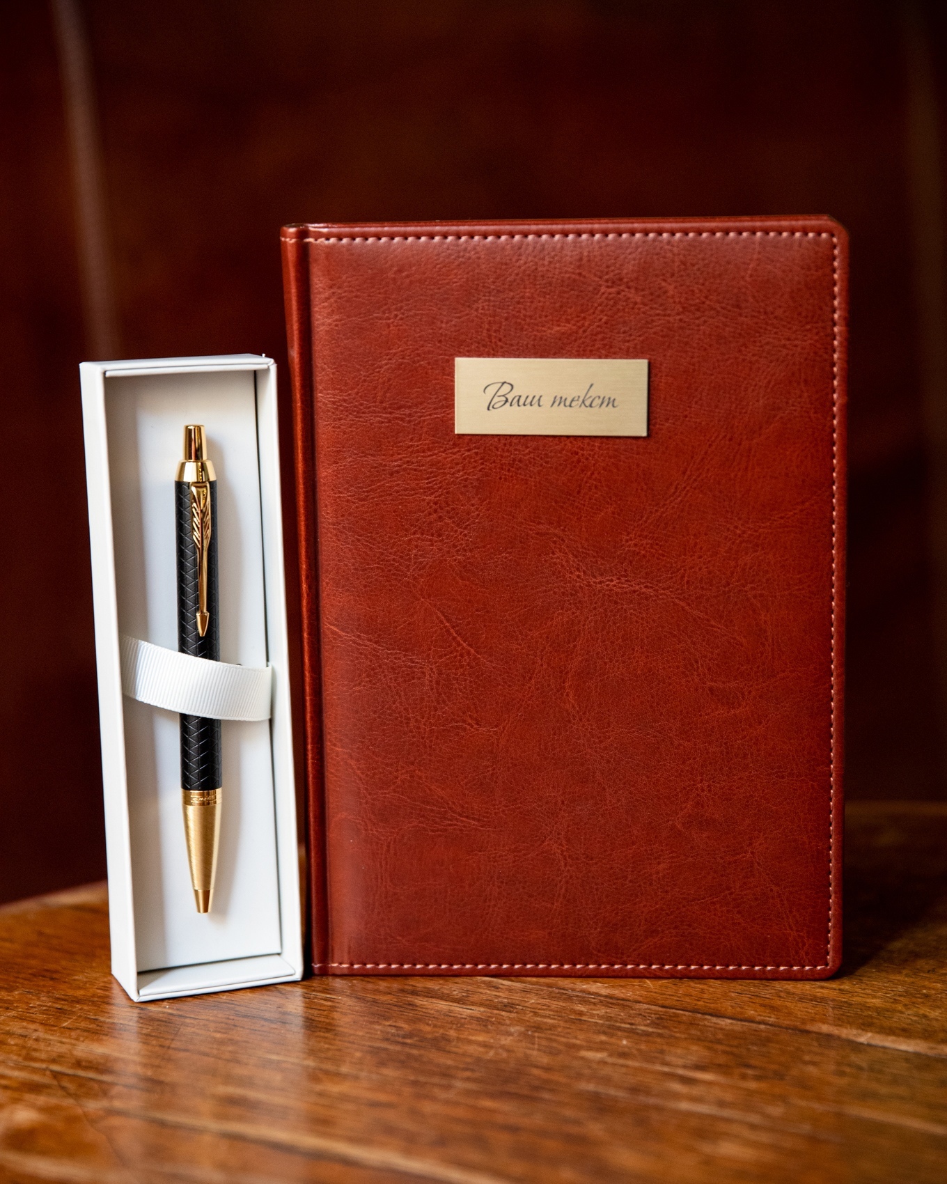 Гравировка на ежедневнике (латунная табличка, ваш текст)