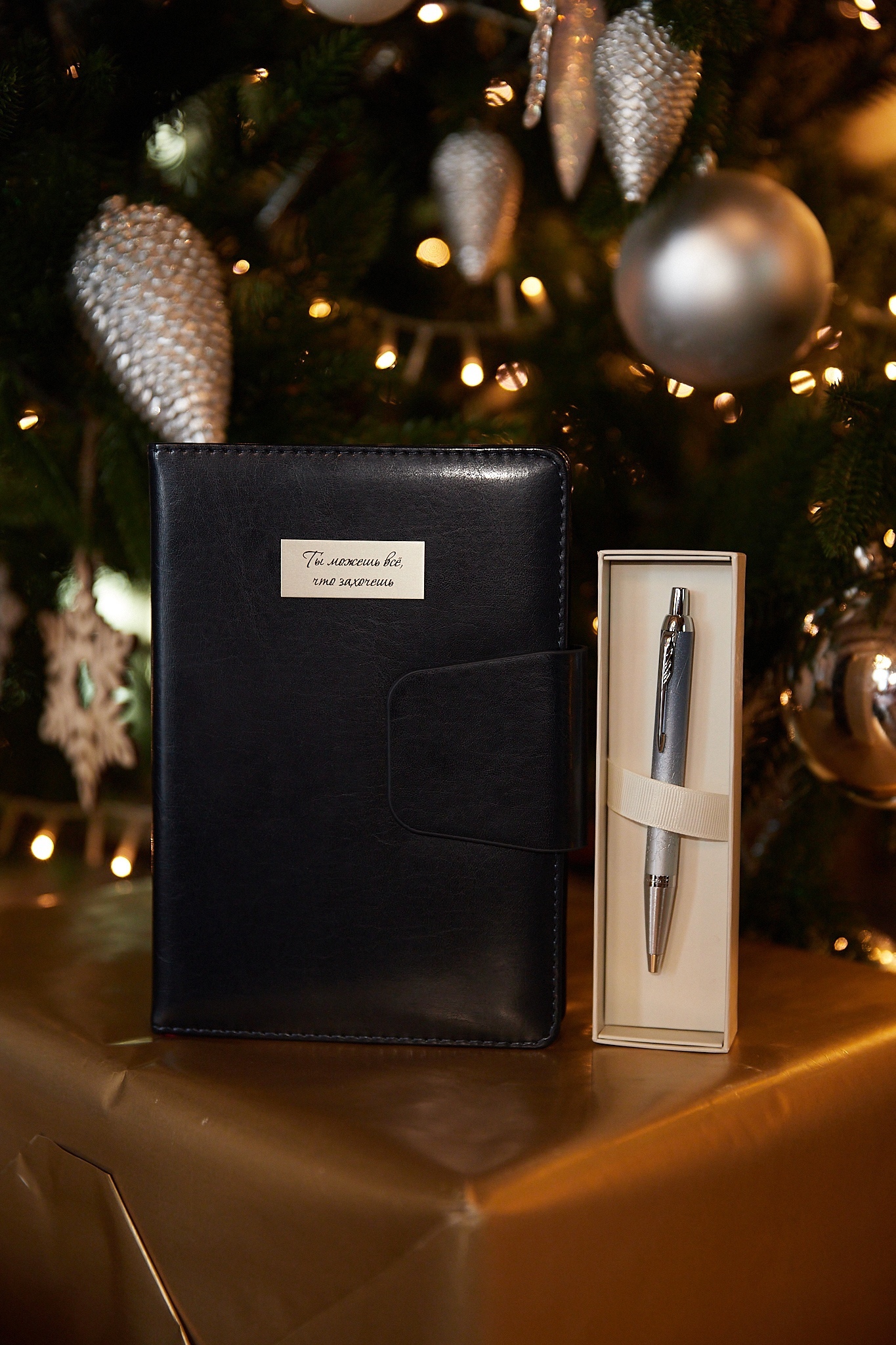Гравировка на ежедневнике (латунная табличка, ваш текст)