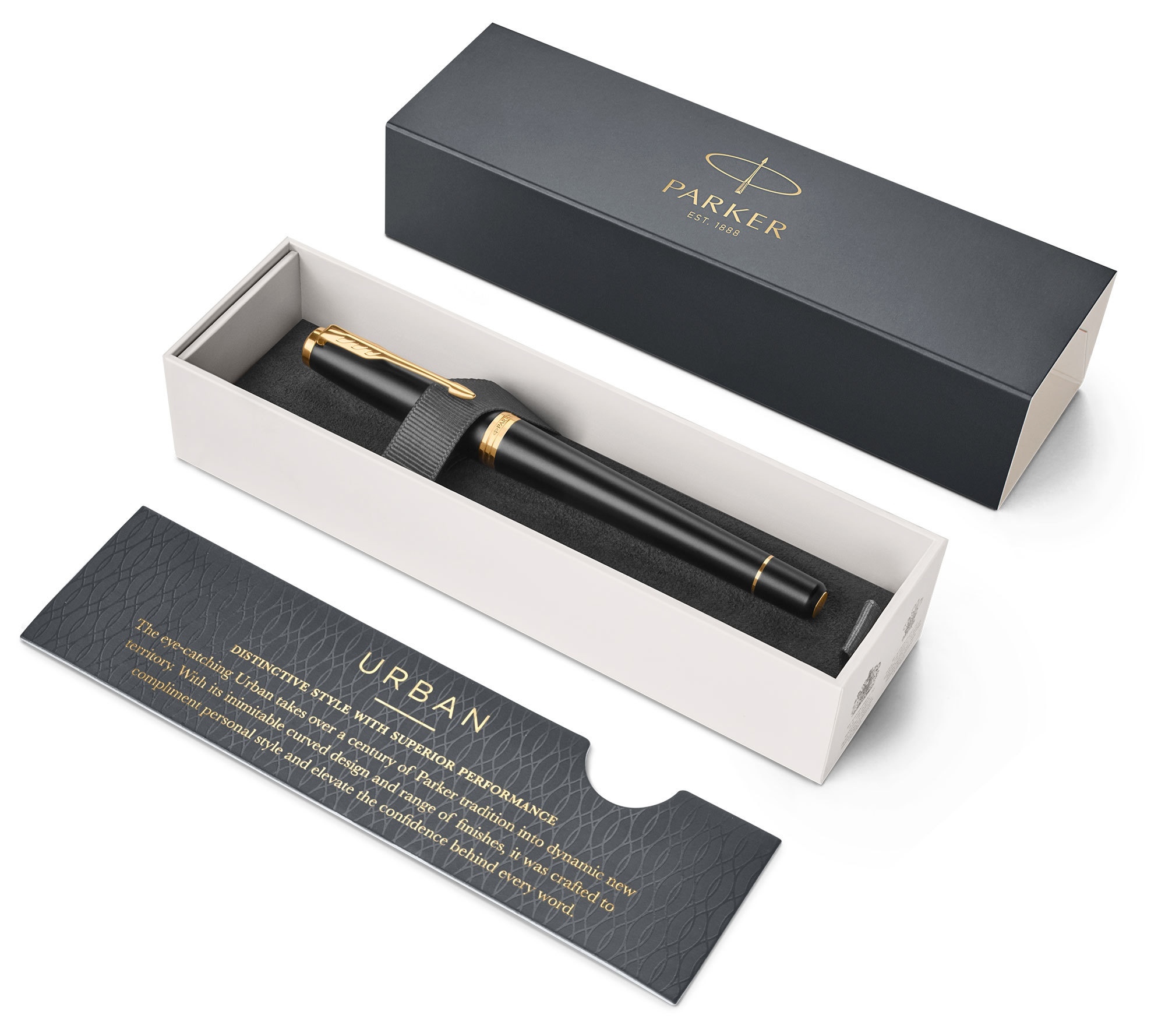 Ручка-роллер Parker Urban Core Muted Black GT 1931584 - современный и стильный вариант для ценителей функциональности и оригинальности. Матовый корпус ручки глубокого черного цвета великолепно сочетается с элементами отделки, покрытыми золотом. На колпачке ручки зажим в виде стрелы с тремя перьями. Это настоящая находка для тех, кто привык выделяться.