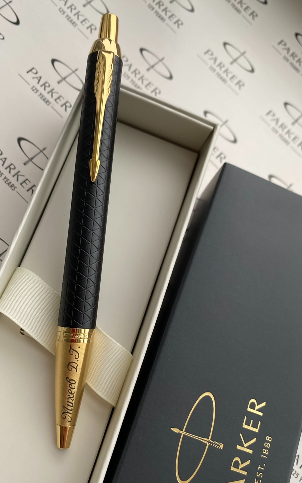 Шариковая ручка Parker IM Premium Black GT 1931667 - современный вариант для ценителей функциональности и оригинальности. Черный матовый корпус ручки с оригинальными гравированными узорами отлично сочетается с позолоченными элементами отделки. На корпусе ручки зажим в виде стрелы с тремя широкими перьями. Это настоящая находка для тех, кто привык быть внимательным к деталям. Важно: заказы с индивидуальной гравировкой направляются в производство после получения оплаты и подтверждения макета гравировки. Подробную консультацию по гравировке можно получить по телефону (Telegram)